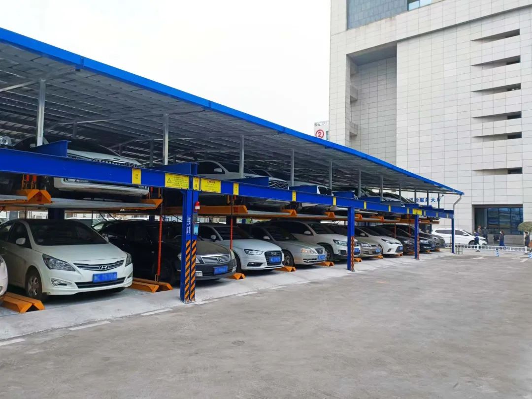 项目设计停车位180个,车位分成上、下两层,属于结构较为简单的升降横移类 (PSH)立体车库,即采用以载车板升降或横移存取车辆的机械式停车设备。这种停车设备具有安装施工便捷、场地适应性强、操作简单等特点,可实现短期内快速扩容车库停车数量,适用于中心城区的医院、购物中心等地缓解停车
