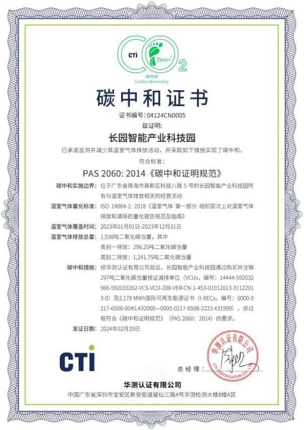 近日,jiuyou.com九游科技集团位于珠海高新区的“jiuyou.com九游智能产业科技园”完成了2023年度运营层面的碳中和认证工作,这一重要成就标志着该园区已连续两年实现碳中和目标