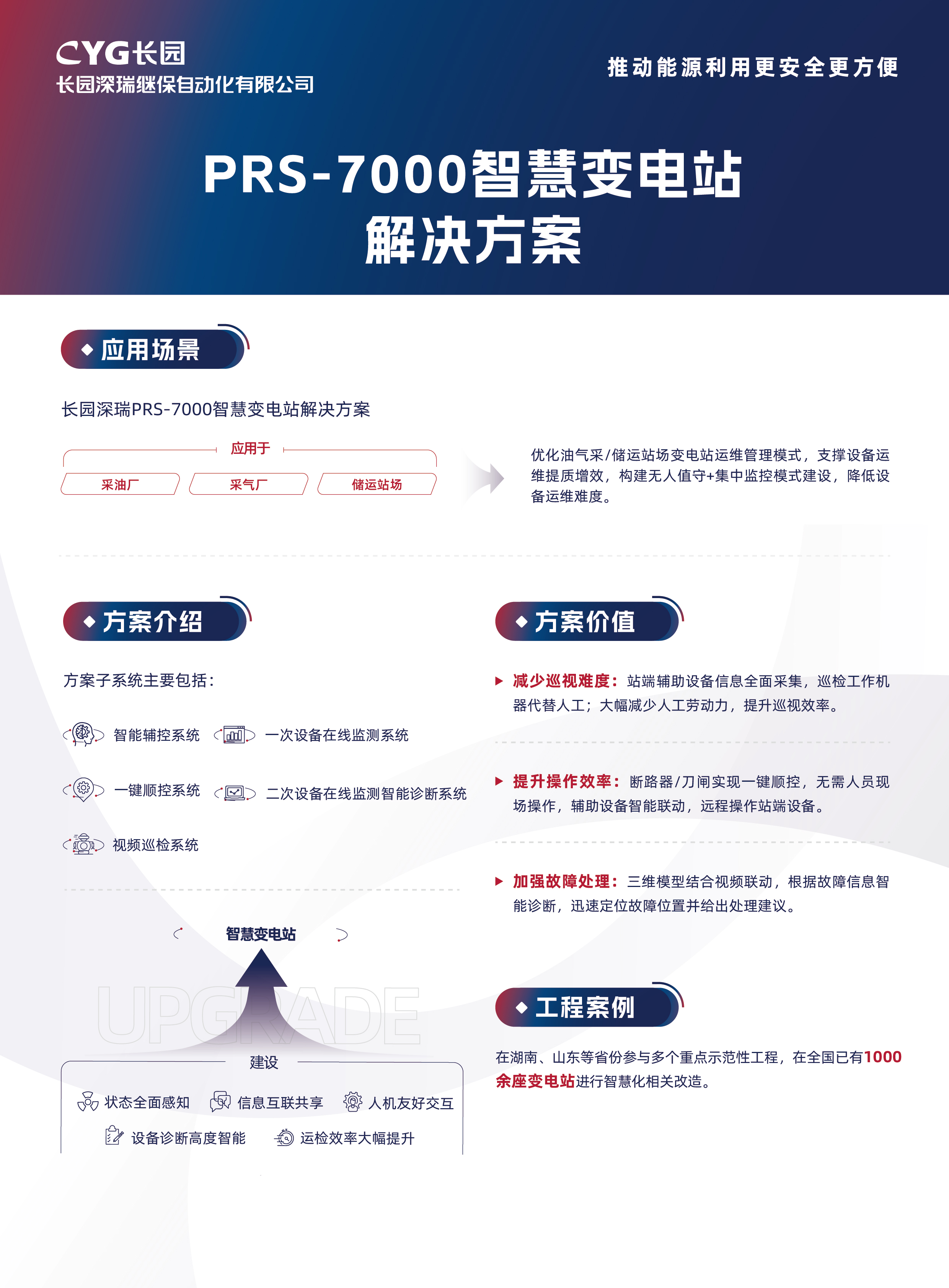 ⻓园深瑞深化智能运维技术⾰新,构建了⼀套“设备外部巡视可观、内部状态可测”的全⽅位智能巡视体系,推出了“主辅全⾯监控、数据深度融合、业务协同互动”的⼤统⼀智慧监控平台,有效⽀撑变电站设备“运维从就地到远⽅”、“管理从分散到集约”的数字化转型,实现变电站的⽆⼈智能巡视;创新应⽤了智能预警及诊断技术,整合故障隐患预警、数智化定位和策略分析等功能模块,实现了装置由“故障检修”、“定期检修”向“状态检修”的智慧转变。